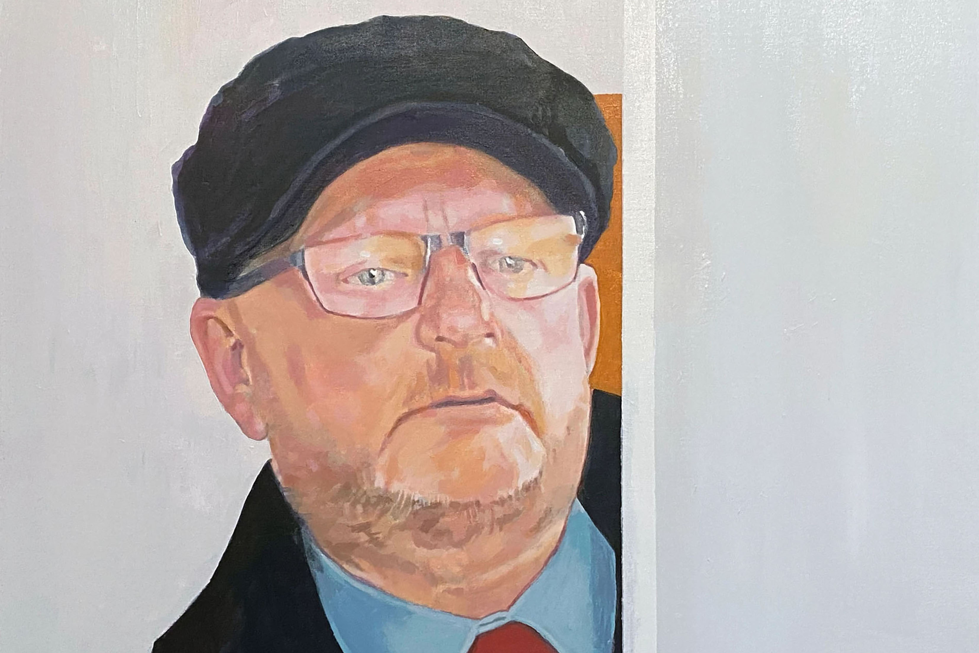 The estate agents who figure in Homes are engaged in a process of viewing and valuation, based on their knowledge of the property market. Painted for Viewings, removed from the context of the tv programme, they may be readable as viewers of a different, or similar, kind, as gallery-goers perhaps, or curators, or art buyers.
